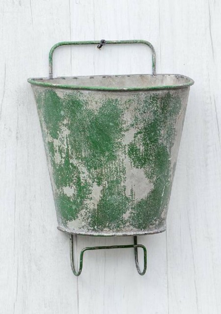 Farmhouse Rustic Green Hanging Planter Galvanized Metal Wall Pocket Country Home