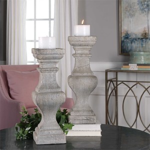 Details About Pair Farmhouse Decor Xxl 21 Pillar Candle Holder Stick Rustic Aged Stone Ivory