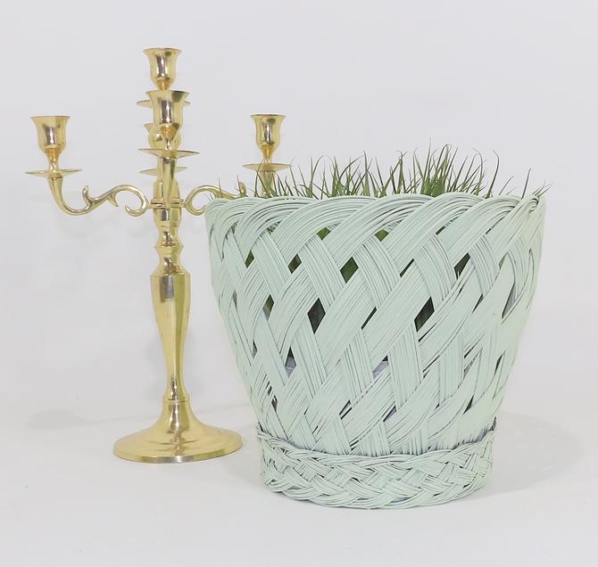 Trash Can Wicker Basket Country Farmhouse Flat Sage Mint