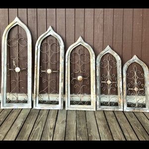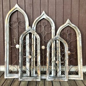 Arched Pair Farmhouse Wood Windows Rustic Wall Decor Gothic