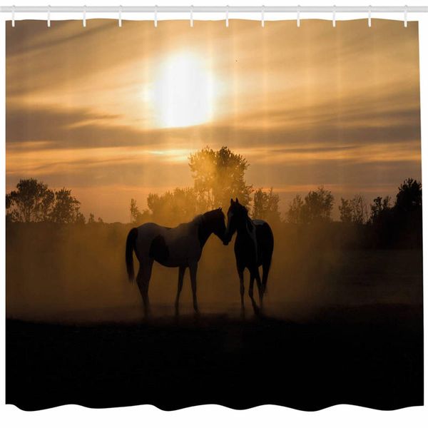 2019 Horse Decor Shower Curtain Silhouette Stallions In Love Farmhouse Landscape Romantic Sunset Forest Fabric Bathroom Decor Set With Hooks From