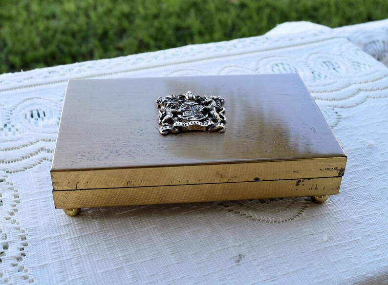 Vintage Uk Royal Coat Of Arms Brass Footed Box Lined Jewelry Trinket Box Collectables Home Decor Farmhouse Decor Mid Century Modern