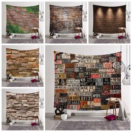 Stone Brick Backdrop Cloth Vintage License Plate Tapestry Headboard Wall Hanging Tapiz Bedside Decoration Farmhouse Decor
