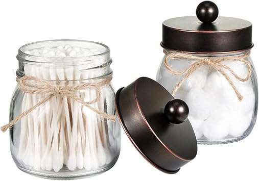 Mason Jar Bathroom Storage Organizer Oil Rubbed Bronze Rustic Farmhouse Decor Bathroom Accessories Qtip Holder Dispenser Glass Apothecary Jars