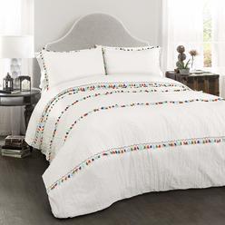 Lush Decor Ruffle Stripe Textured Ruched Shabby Chic Farmhouse 3 Piece Bedding King White 3piece Comforter Set